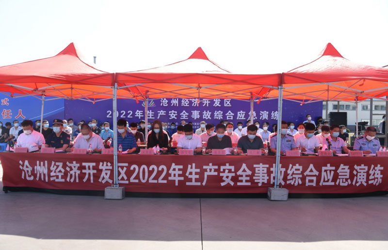 今年6月是第21个全国“安全生产月”。为切实提升全员安全素质、落实安全生产责任制,6月7日上午,沧州经济开发区应急管理局以“遵守安全生产法,当好第一责任人”为主题,在我公司三分厂举行了2022年安全生产月启动仪式暨生产安全事故综合应急演练。