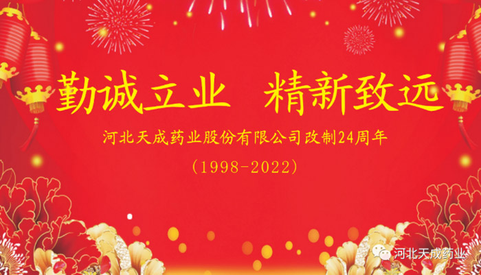 24载风雨兼程,这一路走来,既有披荆斩棘的拼搏汗水,也有百折不挠的奋斗历程,更有硕果累累的丰收喜悦,多年的励精图治,构建起一家集药物研发、生产、销售为一体的集团性制药企业,天成药业现在是国家高新技术企业、中国企业成长百强企业、河北省医药工业十强企业、河北省战略性新兴产业百强企业、科技先导型企业、中国制造业隐形冠军等等,这无不凝聚了新老天成人无尽的智慧和心血。