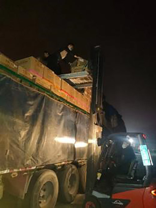 29号一早,琦总顶着巨大的压力前往多个相关部门办理通行证,田金茹想尽一切办法带领厂内司机去接应办理通行证的大车司机。大家分头行动,争分夺秒,与疫情赛跑。接应司机的路上困难重重,转了不知道多少条道路才把司机接到厂。谁都来不及诉说各自的不容易,在做好自身防护的同时,紧锣密鼓地安排调货、装车、开票发货。