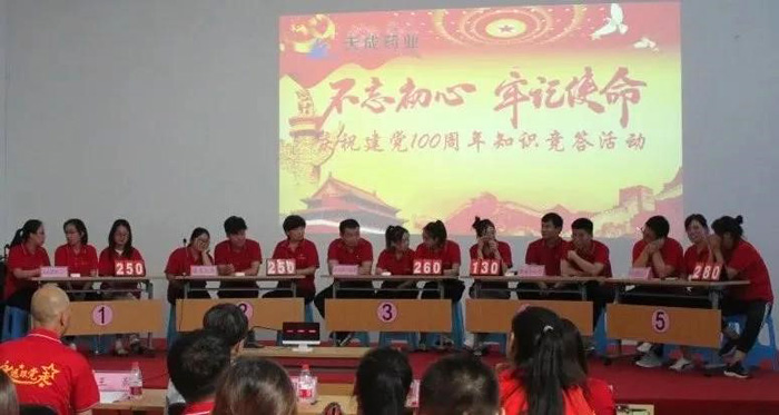 由天成药业总部、天成药业二厂、天成药业三厂、道恩药业和渤海分公司各选派3名队员组成五支代表队参加竞答。